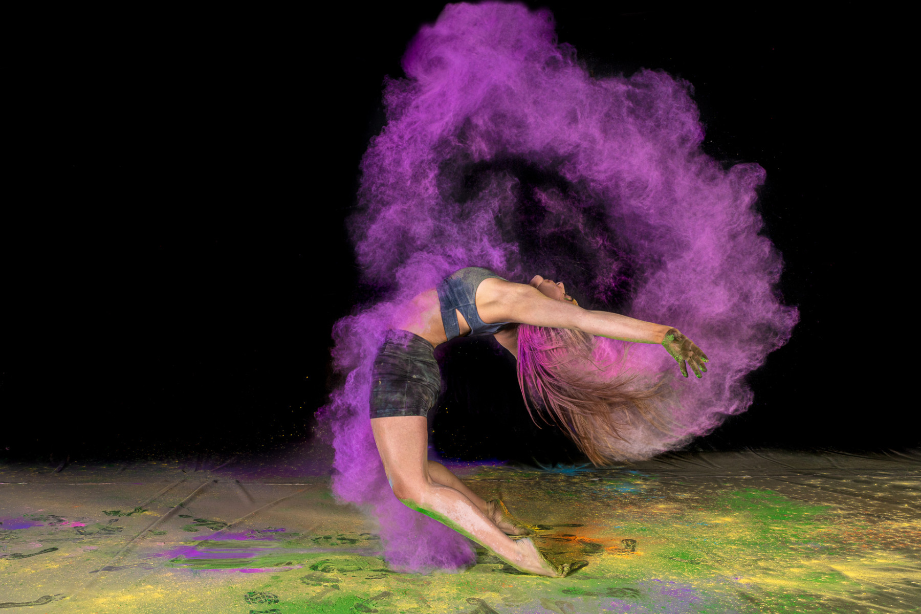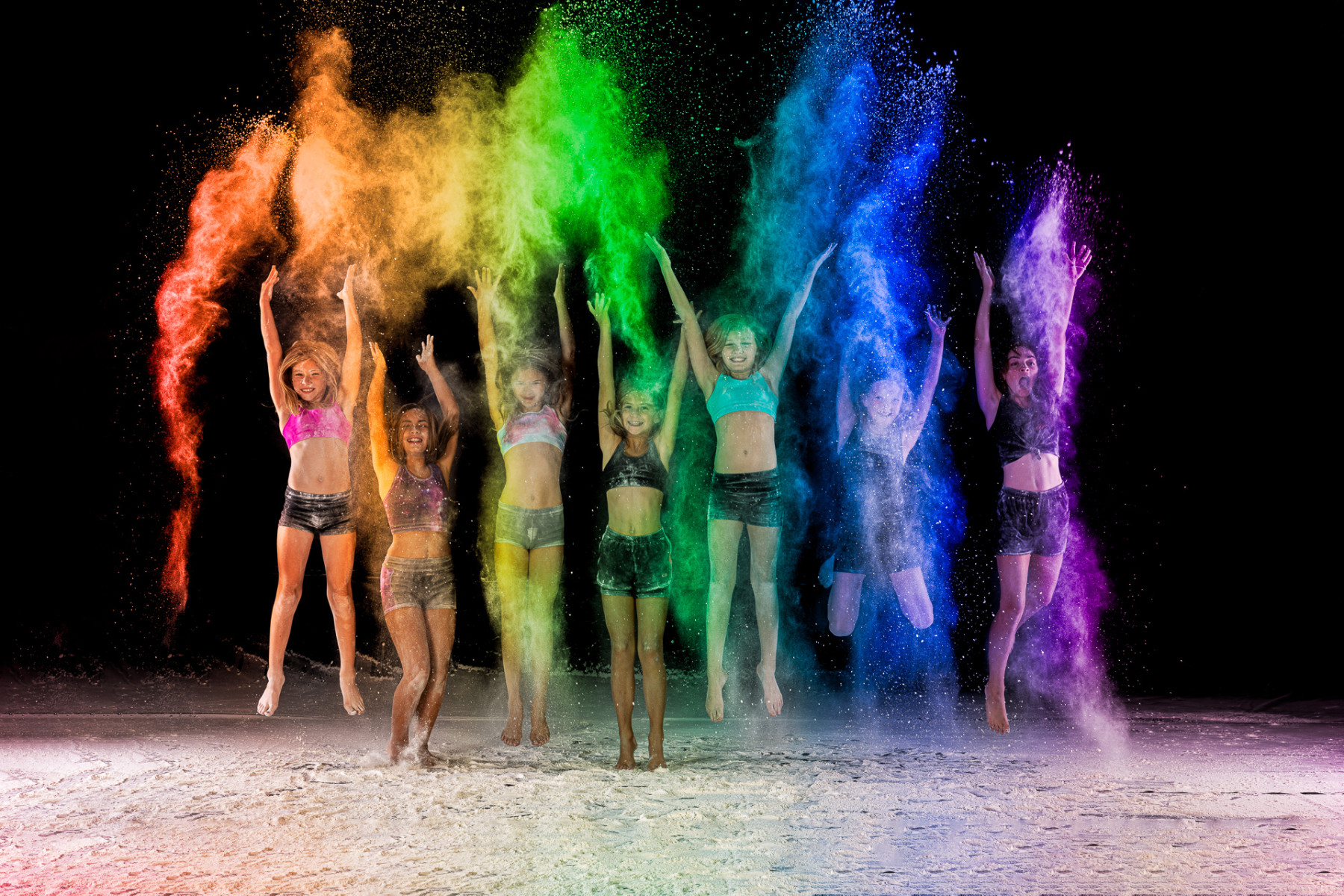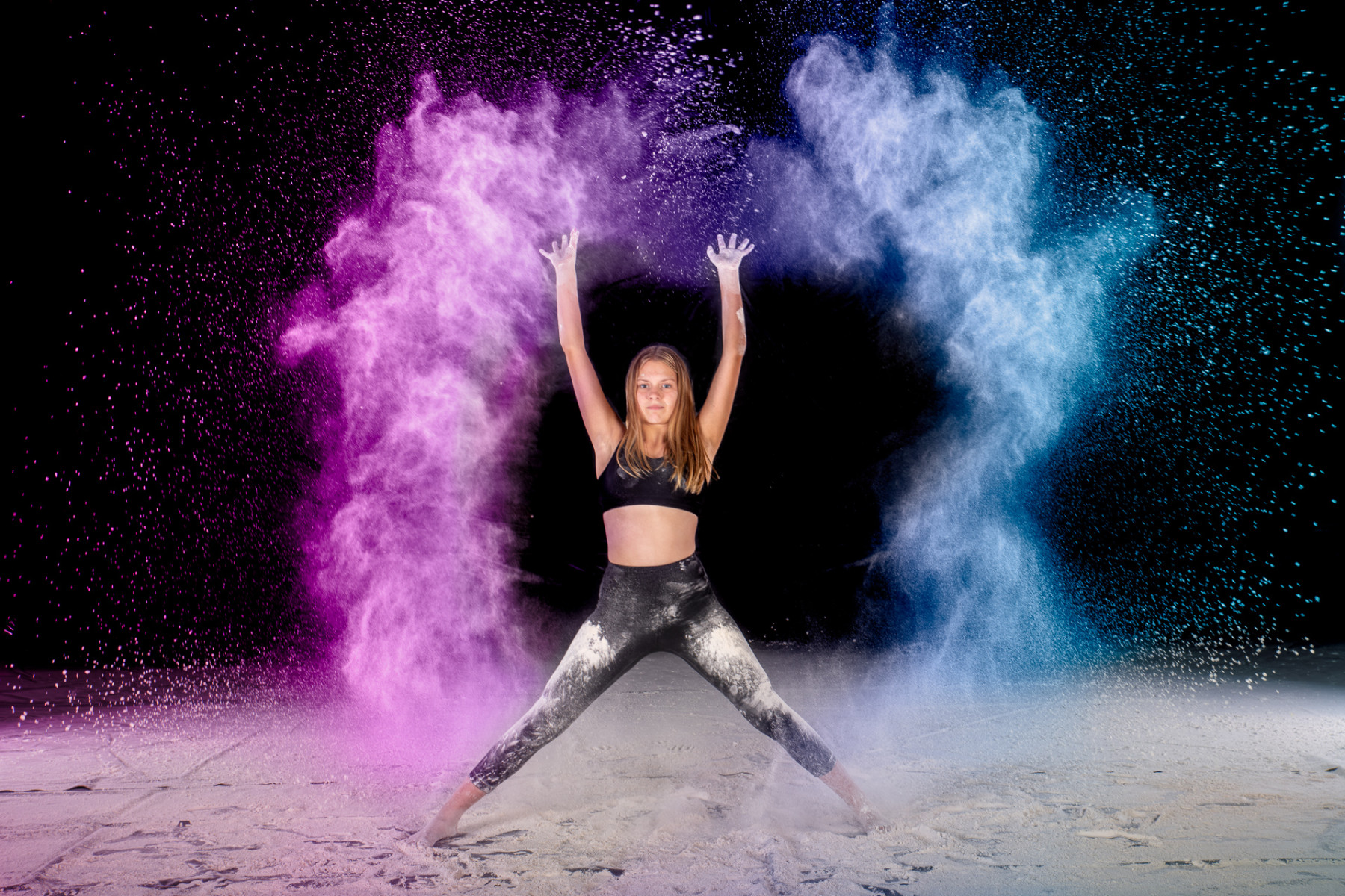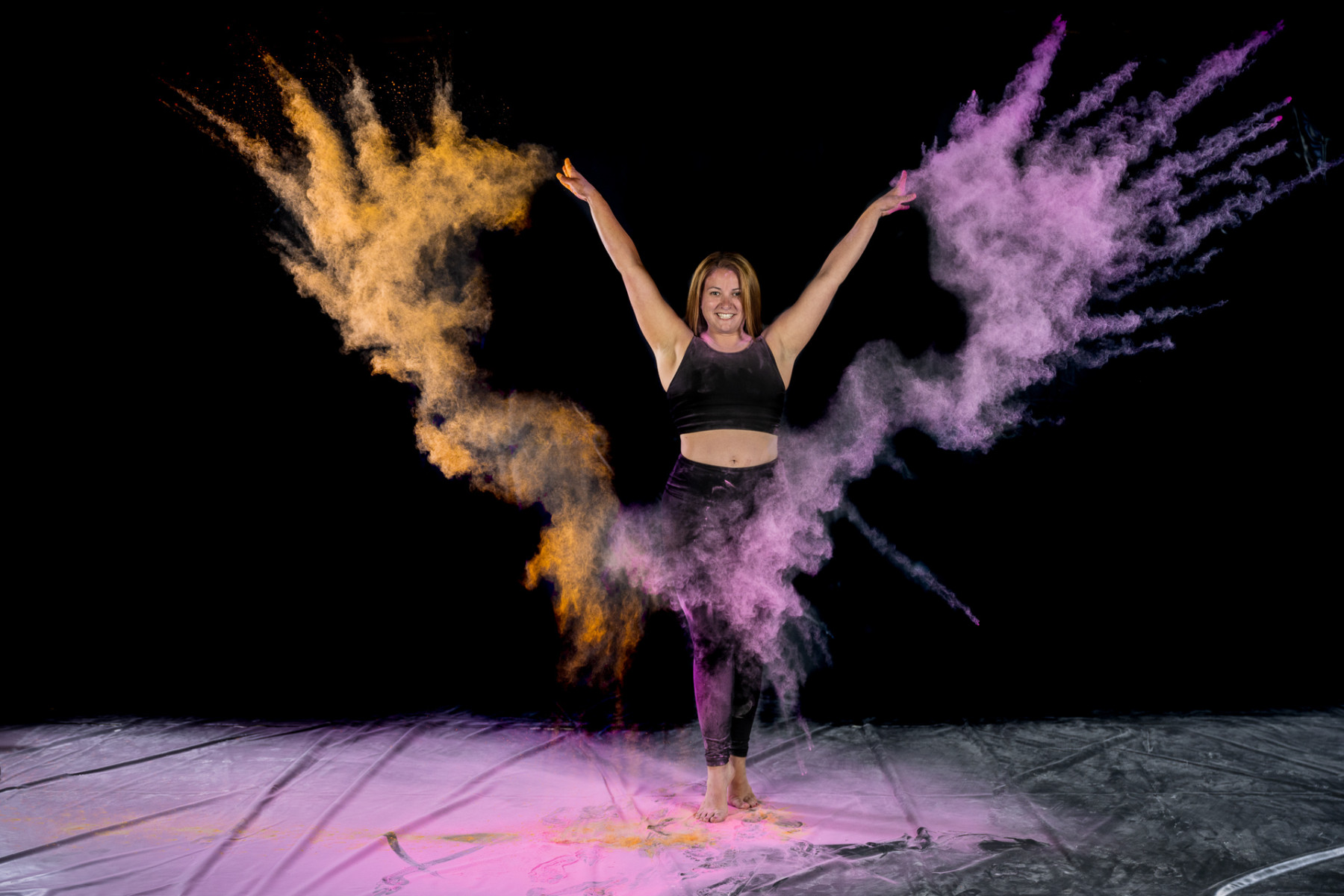 Color powder and flour sessions are one of the most innovative sessions offered in the world of dance photography and we’ve won the People’s Choice Award in 2020 for our flour sessions. The sharp contrast of the white versus the stark black backdrops offer some of the most vivid imagery you’ll find. Interested in adding bold and rich colors to your sessions? Colored Holi Powder is what you want and we’ve got that too.