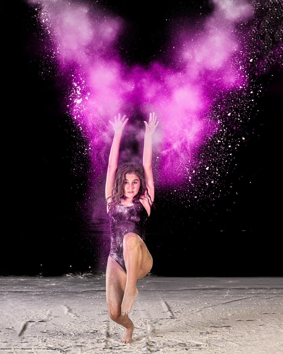 While I originally focused these powder sessions on dancers and gymnasts, I’ve been expanding their use into other sports like lacrosse, volleyball, and soccer. I have yet to find a single sport that a little extra powder doesn’t bring the activity to life with a pop! Note that some of these other sports and activities require extra time to really capture the images the way that we both want – so plan accordingly.